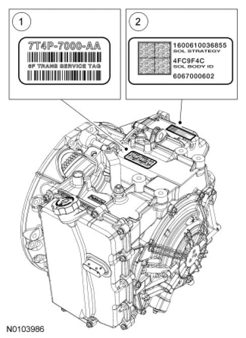 When servicing the solenoid body, use the identification tag located on top of the transaxle case.