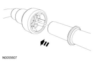 NOTICE: When reusing liquid or vapor tube connectors, make sure to use compressed air to remove any foreign material from the connector retaining clip area before separating from the tube or damage to the tube or connector retaining clip can occur. Apply clean engine oil to the end of the tube before inserting the tube into the connector.
