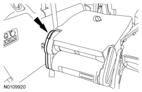 9. Carefully lift the LH load floor flapper panel, disconnect the electrical connectors, detach the retainers and remove the Power-Fold Seat Module (PFSM).