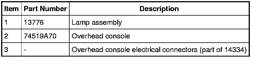 NOTE: Overhead console with roof opening panel shown, other consoles similar.
