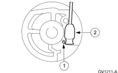 - Push in the locking arm on the cruise control cable cap and rotate the cap counterclockwise.