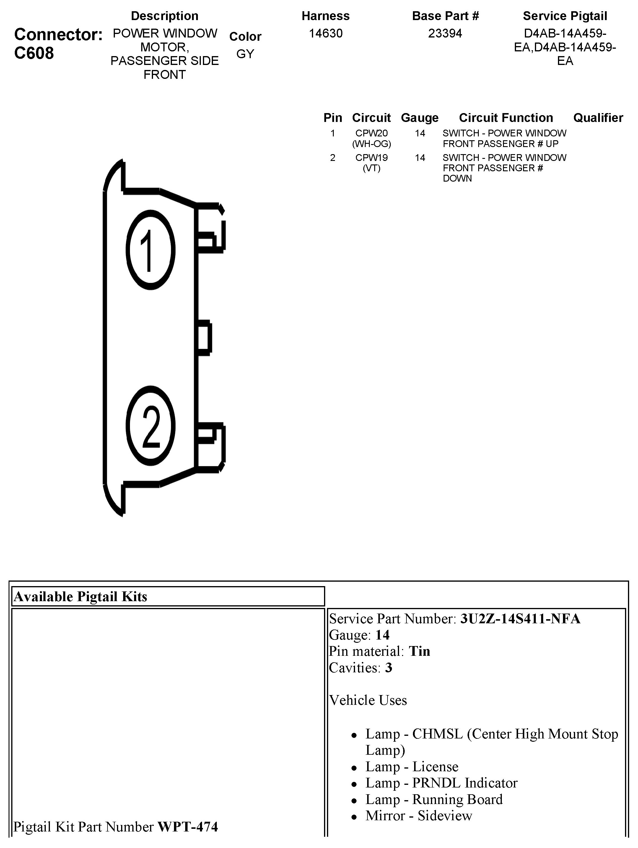 C608 Power Window Motor, Passenger Side Front