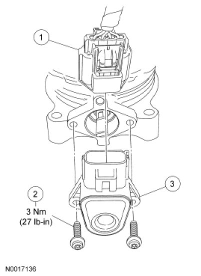 3. NOTICE: Do not use a high-speed driver to install the new screws or damage to the Throttle Position (TP) sensor may occur.