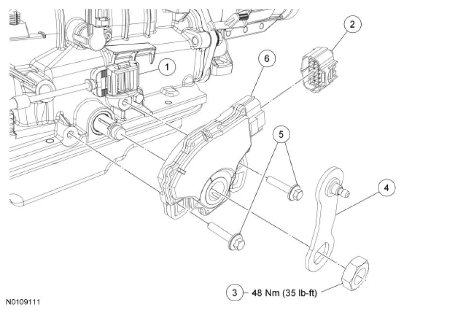 - Tighten to 48 Nm (35 lb-ft).