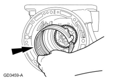 24. NOTE: The low/reverse brake drum must be pulled forward to install the low/reverse planet retaining ring.