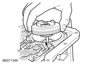 26. Temporarily install the low/reverse band servo piston and rod to hold the low/reverse band in position.