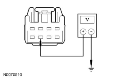 - Measure the voltage between driver window control switch C504-7, circuit CPW30 (GY/YE) harness side and ground.