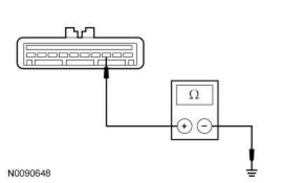 - Measure the resistance between the cruise control actuator C122-3, circuit VMC05 (VT/OG), harness side and ground.