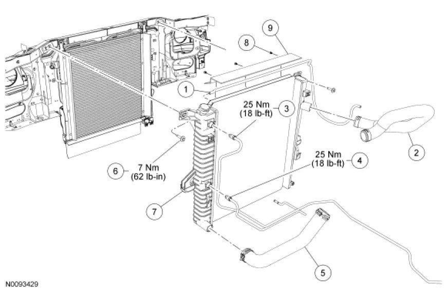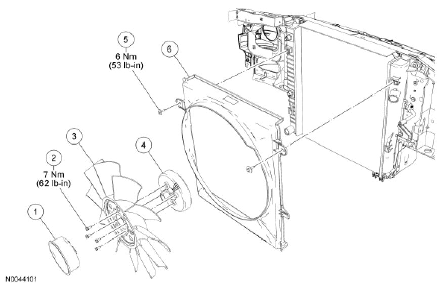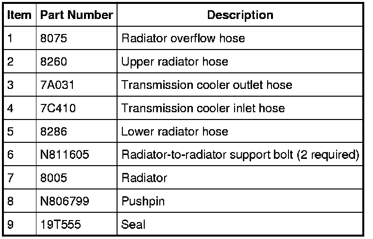 Radiator and Cooling Fan - Exploded View, 4.0L SOHC