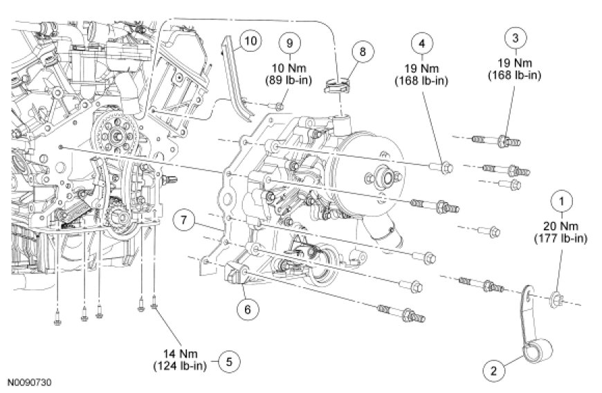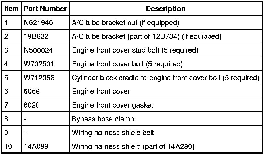 Install the 5 cylinder block cradle-to-front cover bolts.