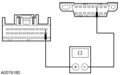 - Measure the resistance between the PCM C175b-11, circuit VDB04 (WH/BU), harness side and the DLC C251-6, circuit VDB04 (WH/BU), harness side.