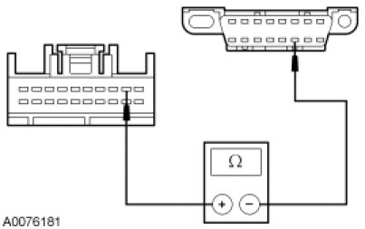 - Measure the resistance between the DLC C251-6, circuit VDB04 (WH/BU), harness side and ground; and between the DLC C251-14, circuit VDB05 (WH), harness side and ground.