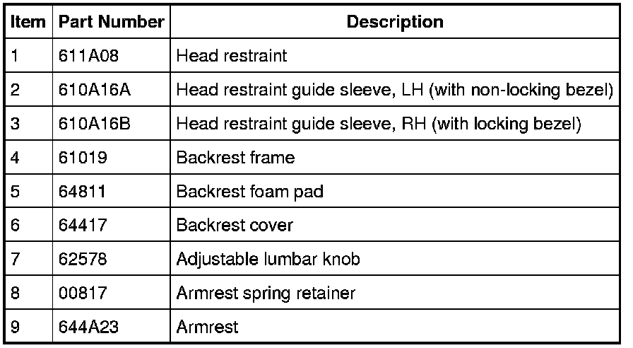 - Make sure the head restraint adjusts without excessive effort and locks in place. If binding occurs, inspect the head restraint guide sleeves for damage and install new as needed.