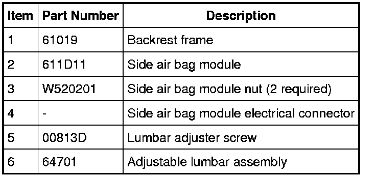 WARNING: Front seat backrest trim covers installed on seats equipped with seat side air bags cannot be repaired. A new trim cover must be installed. Cleaning is permissible. Failure to follow these instructions may result in the seat side air bag module deploying incorrectly and increase the risk of serious personal injury or death in a crash.