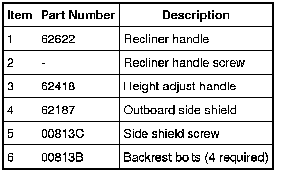 - The armrest is keyed to the backrest frame. Note position of the armrest keyway for correct installation.