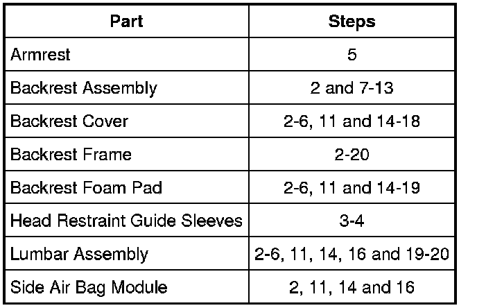 Seat Backrest Components - Removal Steps