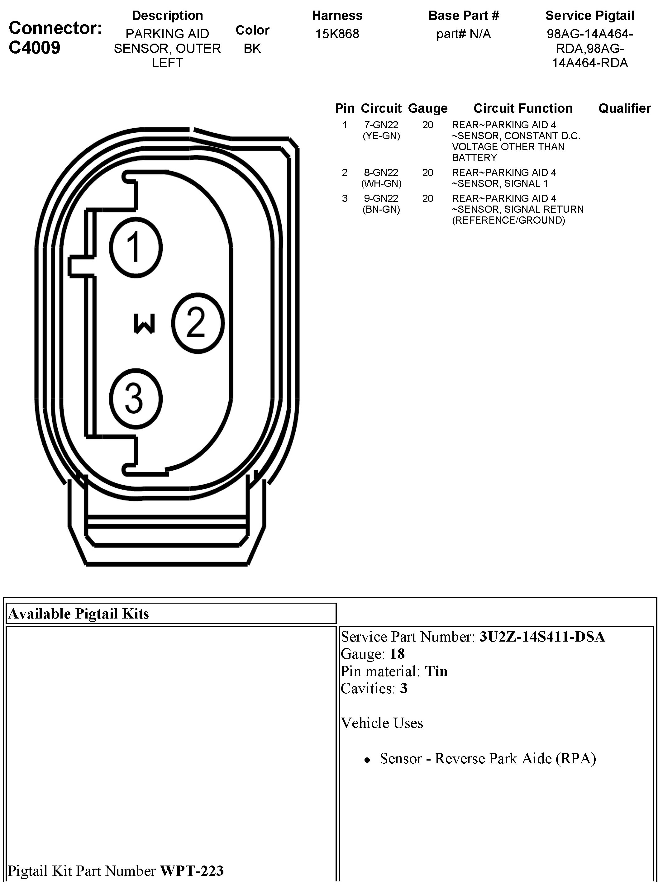 C4009 Parking Aid Sensor, Outer Left
