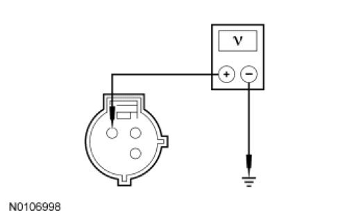 - Measure the voltage between ground and A/C pressure transducer C1260-3, circuit 8-FA88 (WH/VT), harness side.