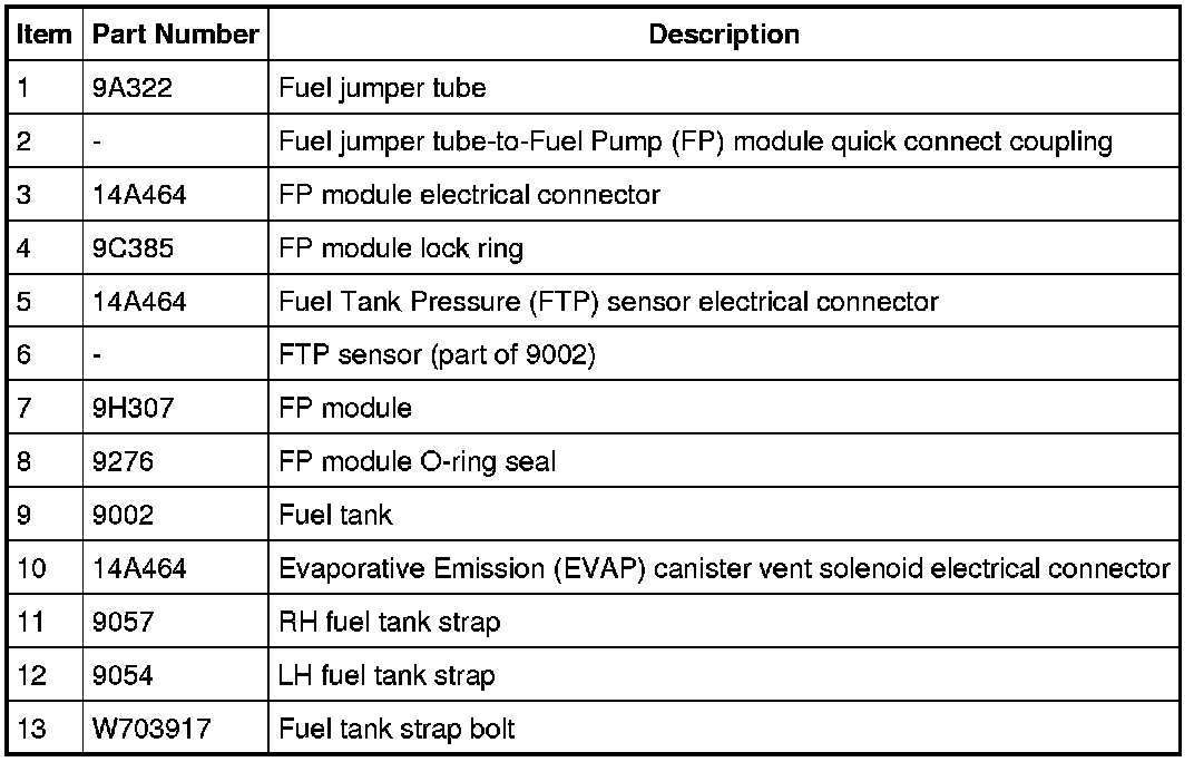 Fuel Pump (FP) Module, Fuel Tank and Straps