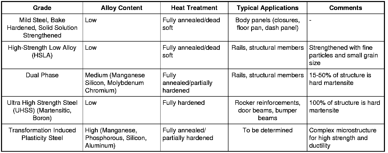 c Dual phase steels DP 700, DP 780 and DP 980 must be replaced at factory joints, no sectioning unless approved procedure in information.
