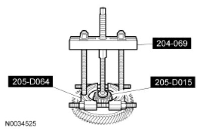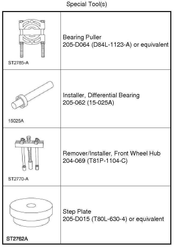 Using the Front Wheel Hub Remover/Installer, Bearing Puller and Step Plate, remove the differential case bearings.