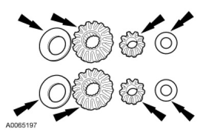 1. Rotate the differential pinion gears 90 degrees and remove the differential pinion gears with the thrust washers.