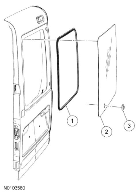 NOTE: The rear door glass must be positioned within 10 minutes of applying the urethane adhesive.