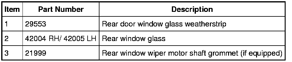 If installing a new rear door glass, apply glass primer according to manufacturer's instructions. Allow at least 6 minutes to dry.