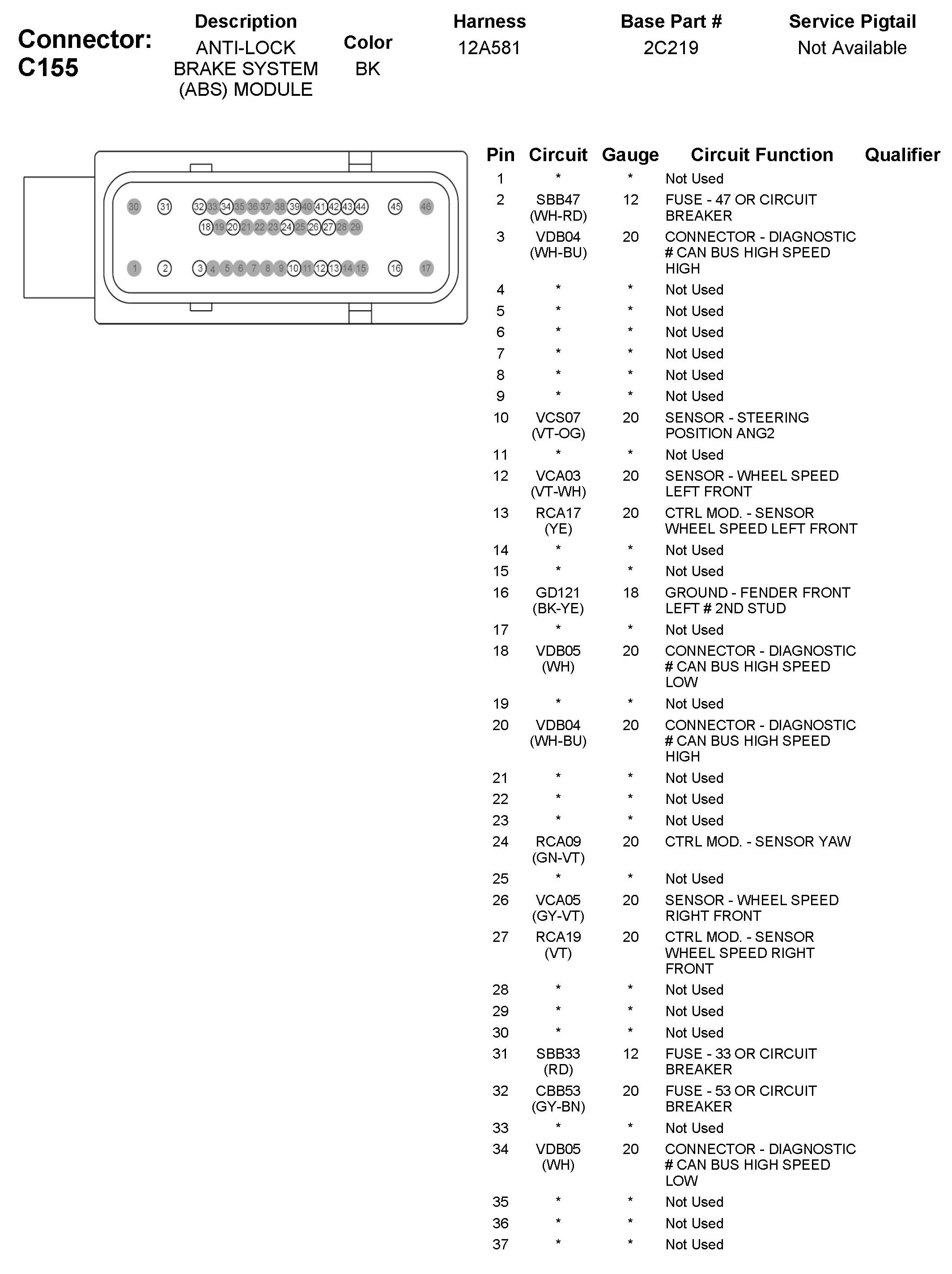 C155 Anti-Lock Brake System (ABS) Module