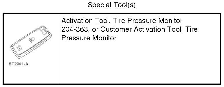NOTE: If a sensor does not respond to the Tire Pressure Monitor Activation Tool, move the vehicle to rotate the wheels at least one-fourth of a turn and attempt to activate the same sensor again. If the sensor still does not respond, attempt to activate the same sensor again using the customer activation tool (if available). If the sensor still fails to train, attempt to train the sensor with the vehicle doors open.