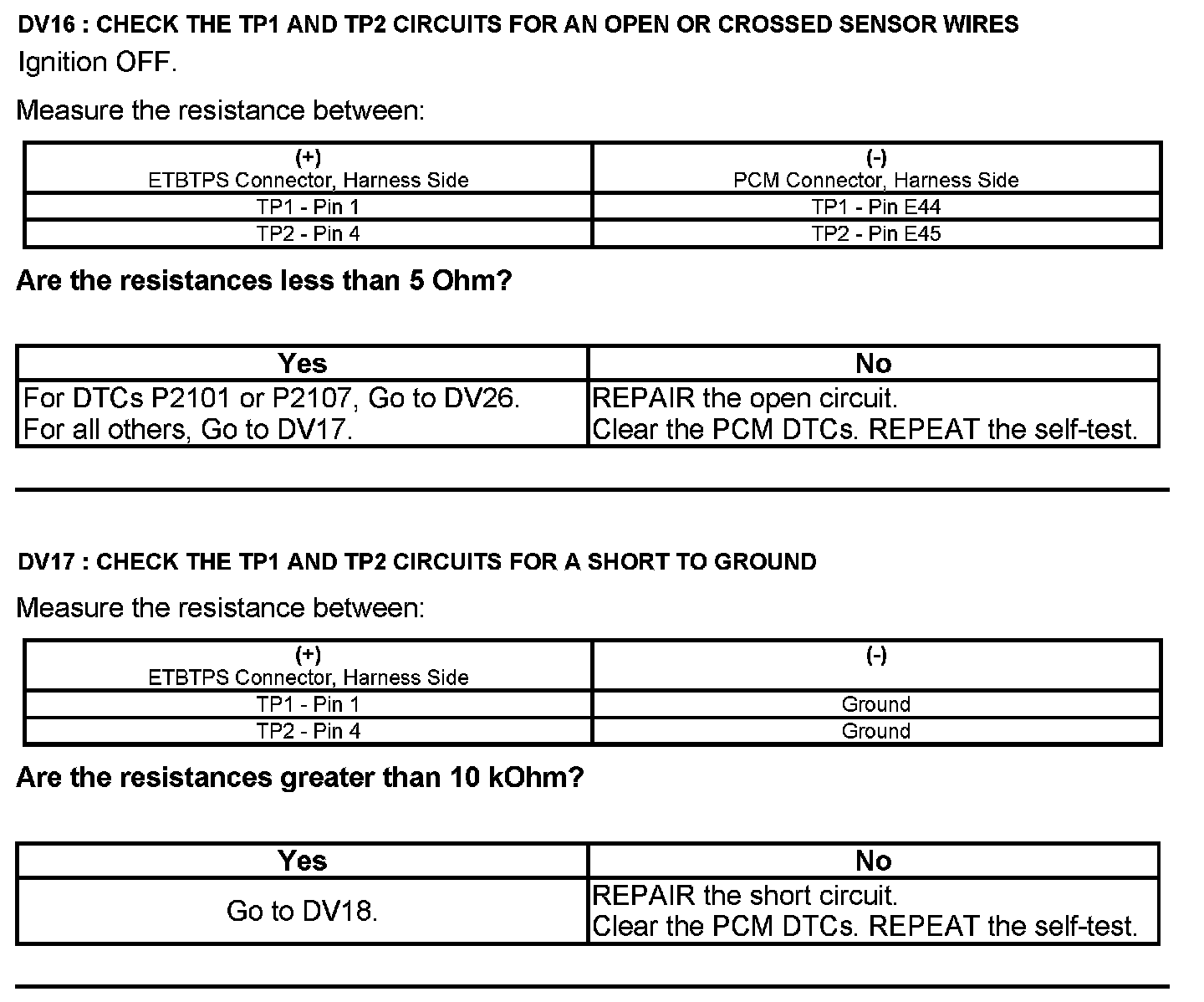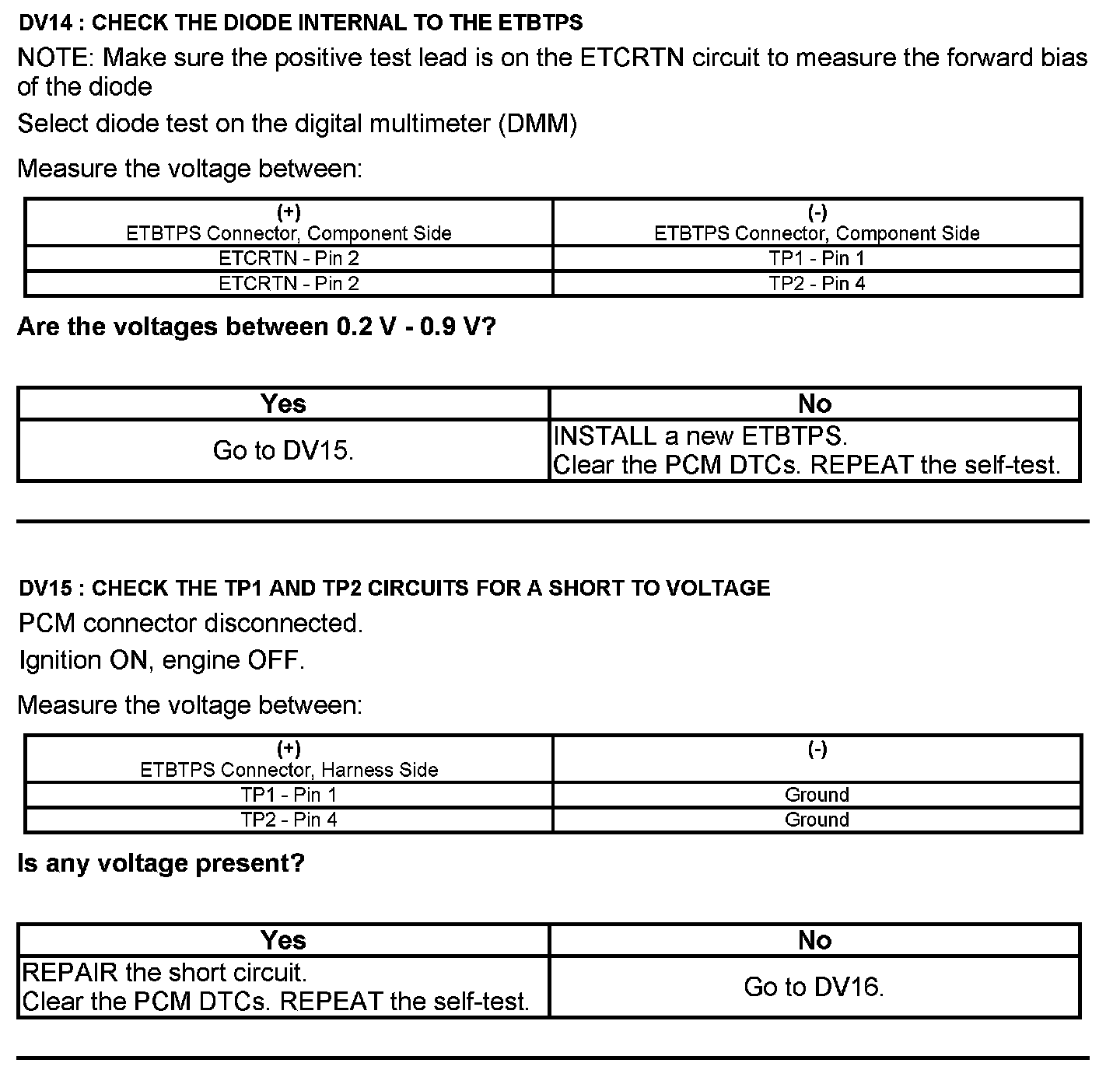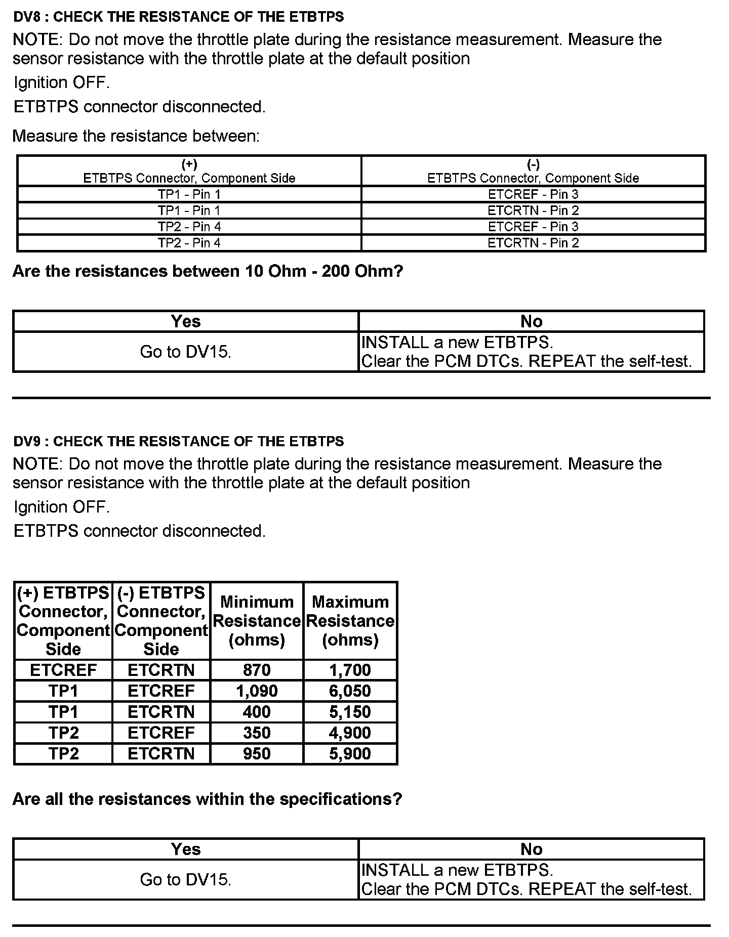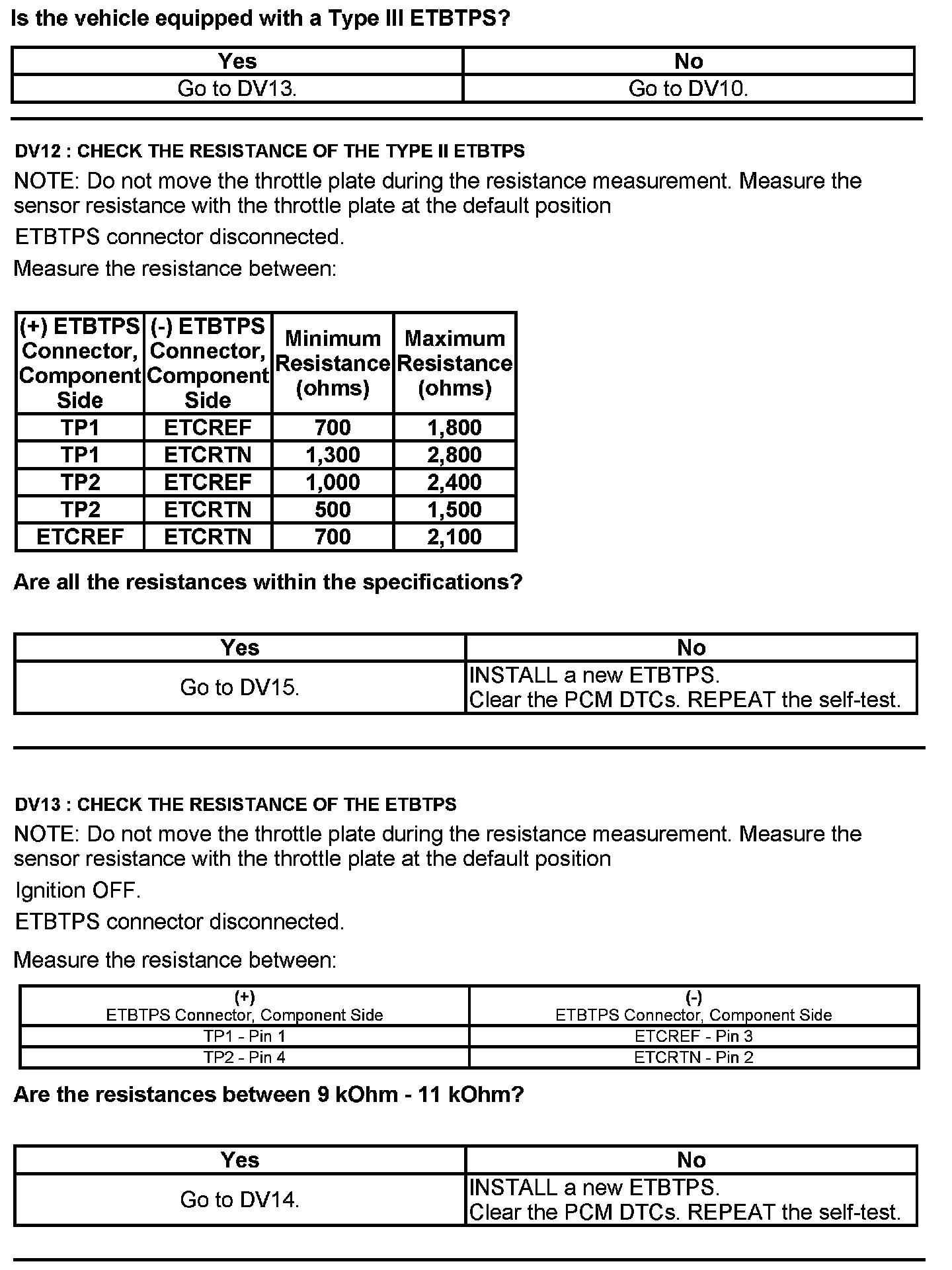 Test DV: Throttle Body Assembly Electronic Throttle Control (ETC)