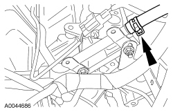 25. Connect the LH HO2S (Heated Oxygen Sensor) sensor electrical wiring harness retainer to the rear of the LH cylinder head.