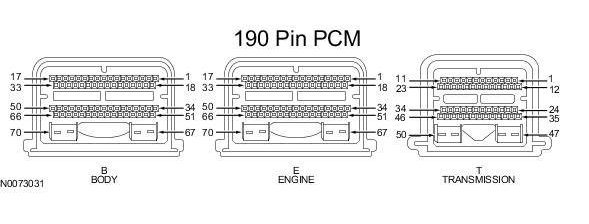 Powertrain Control Module (PCM) Connector - For PCM connector views or reference values, refer to Reference Values.