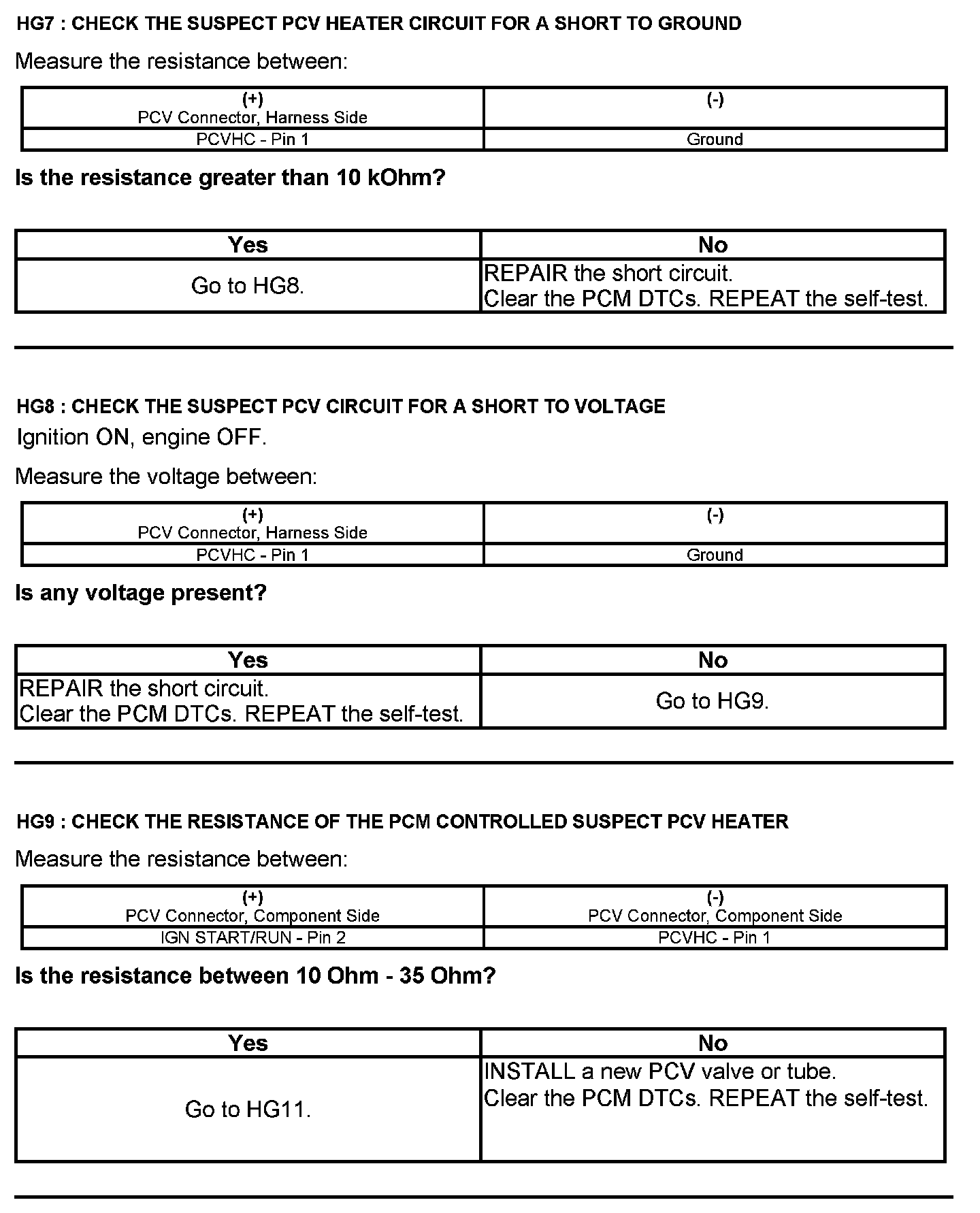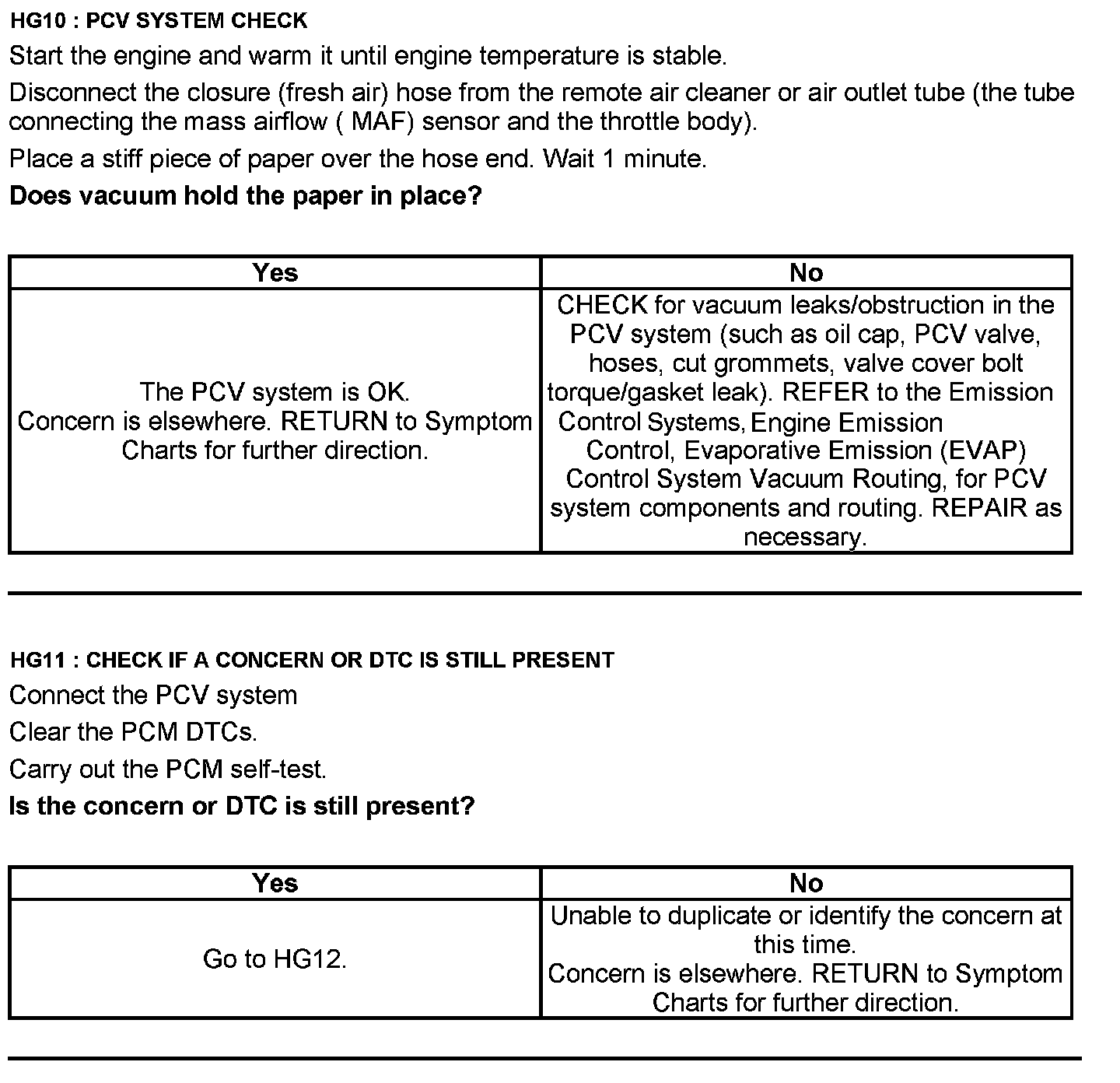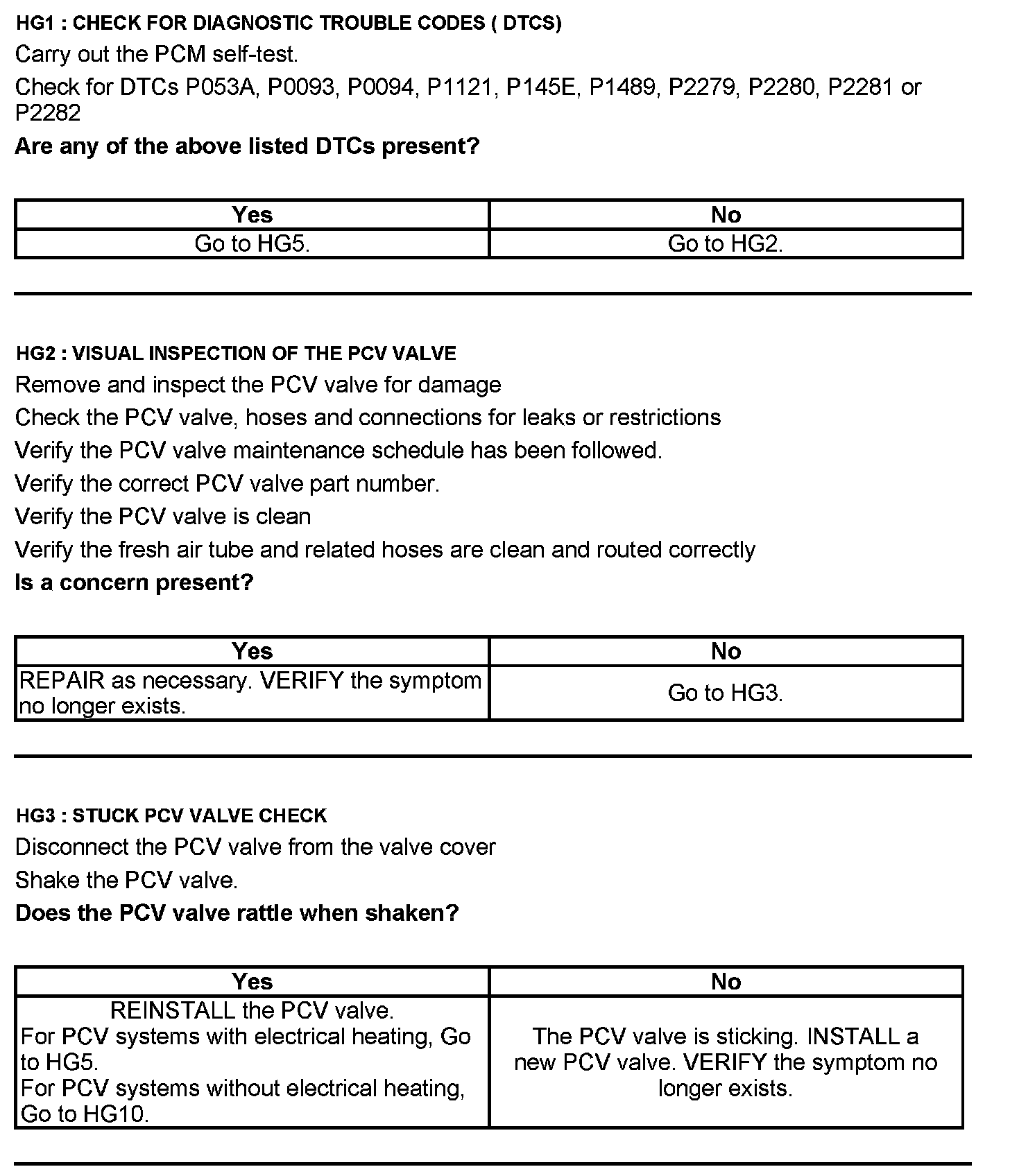 Test HG: Positive Crankcase Ventilation (PCV) System