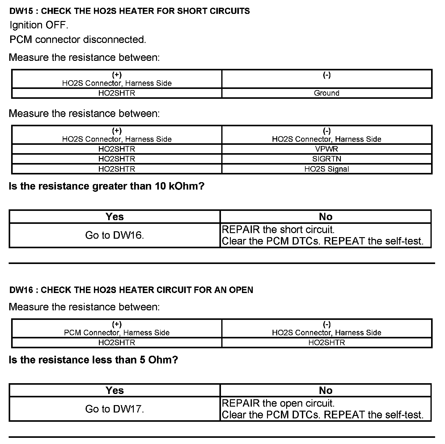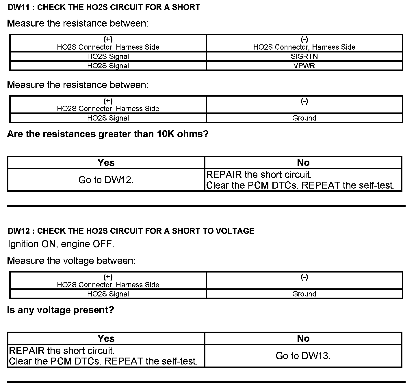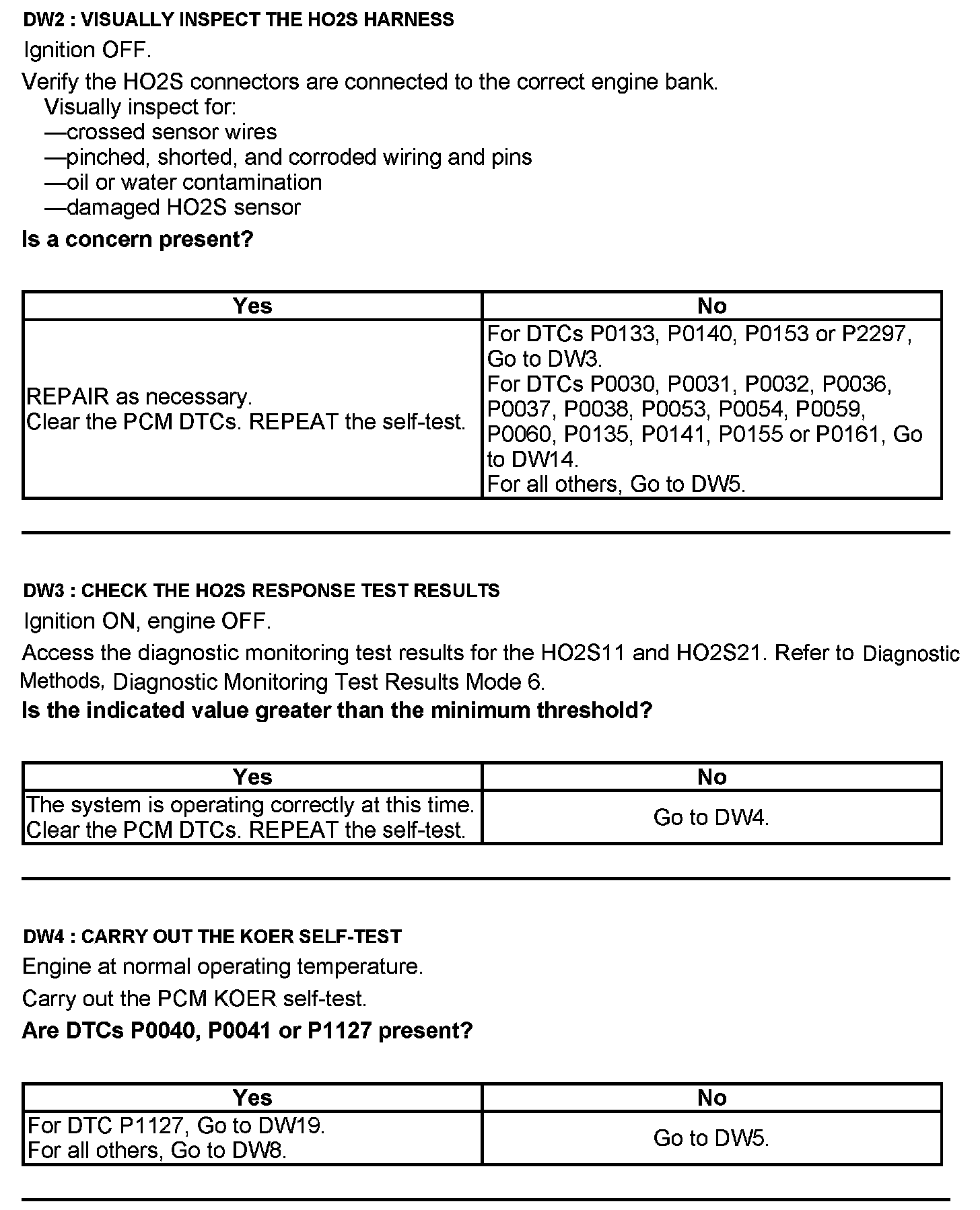 Test DW: Heated Oxygen Sensor (HO2S)