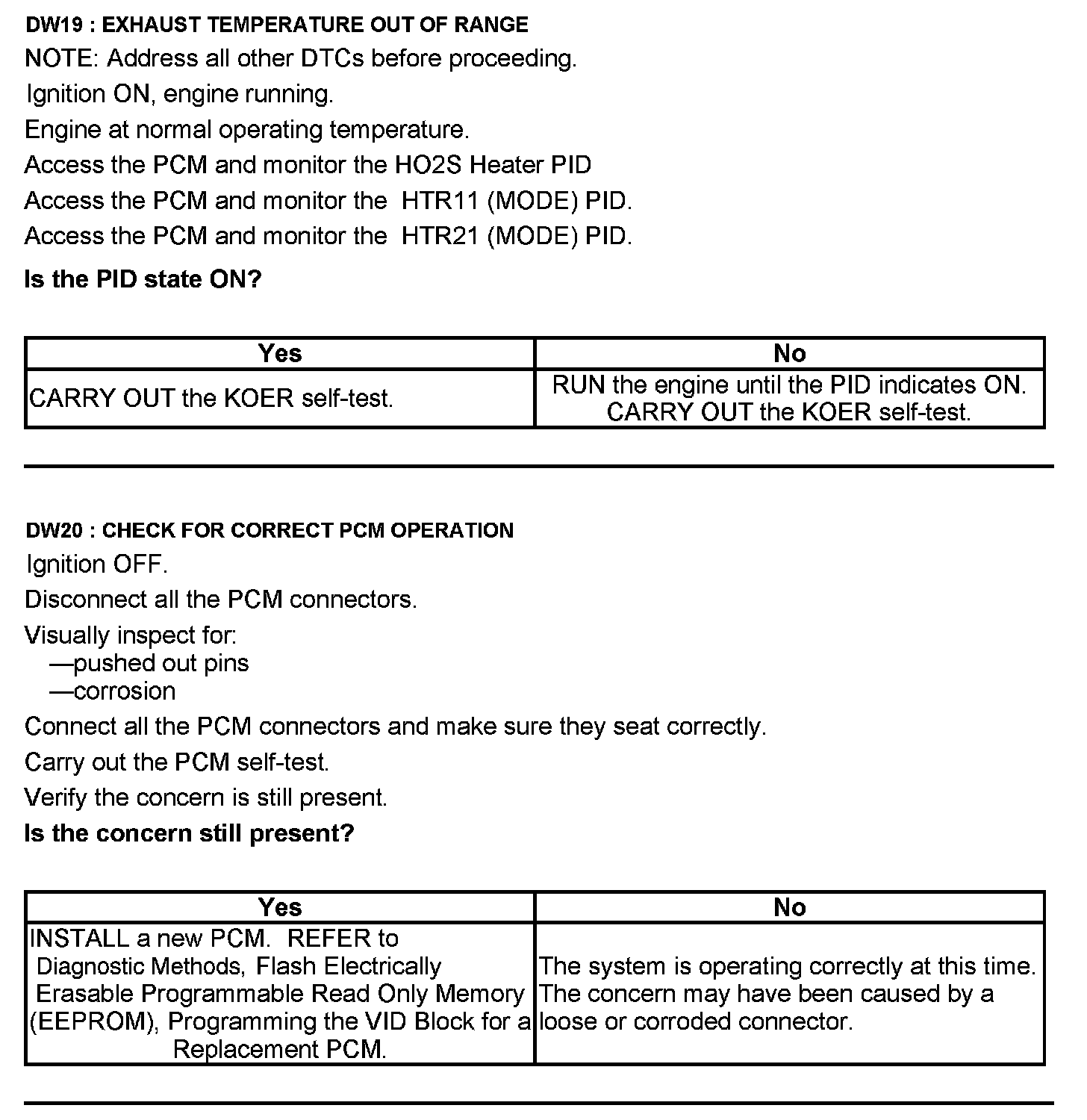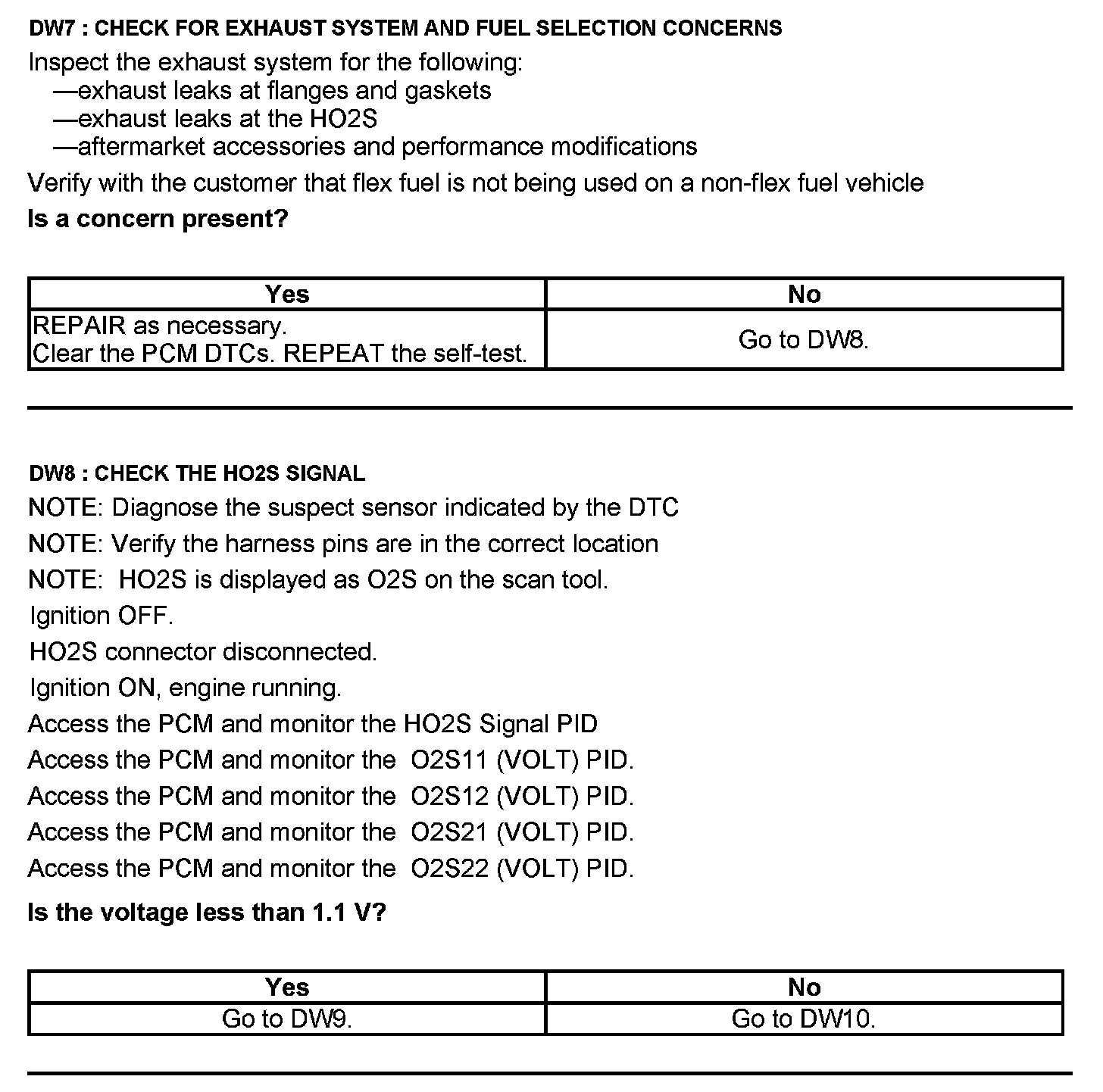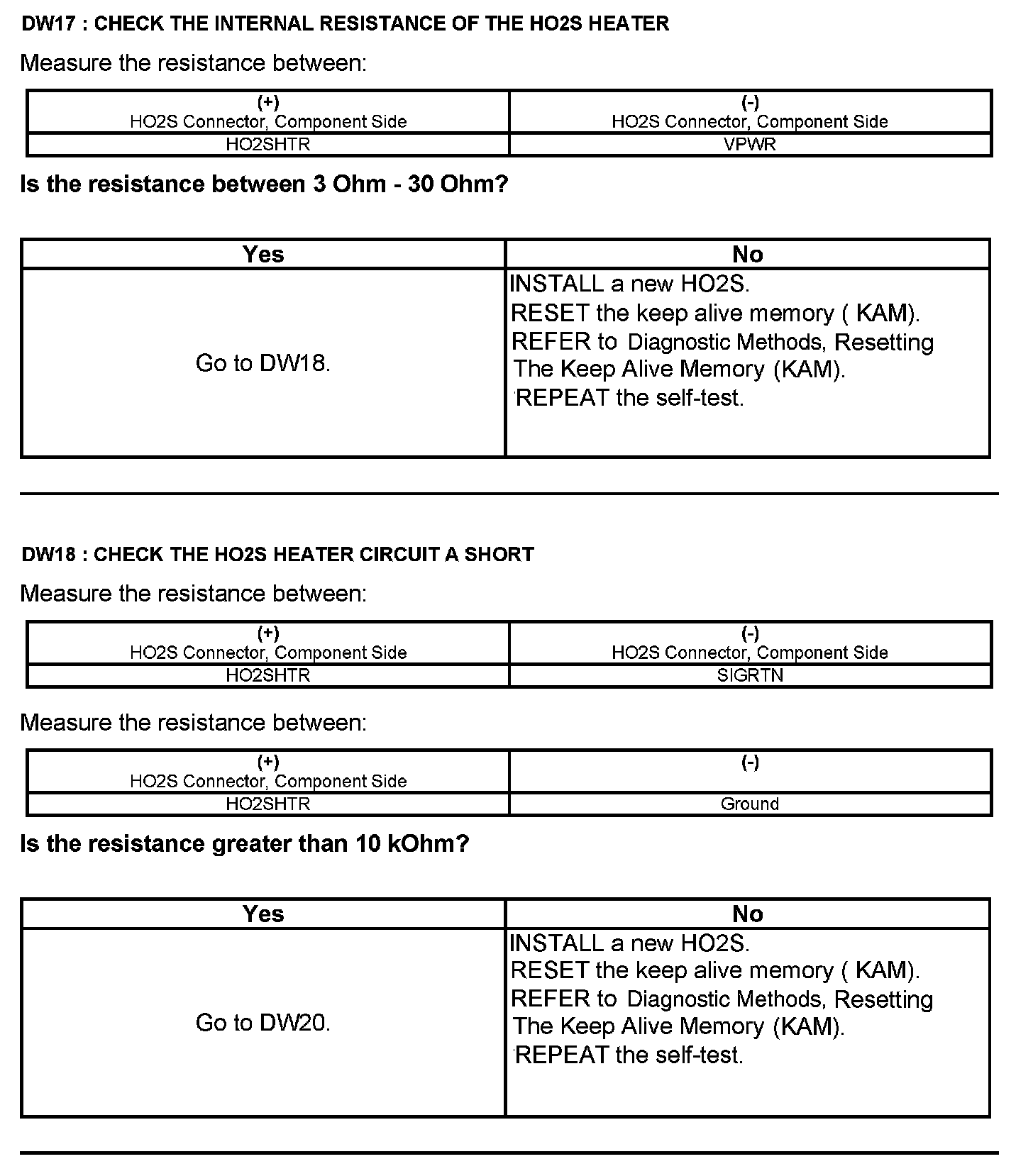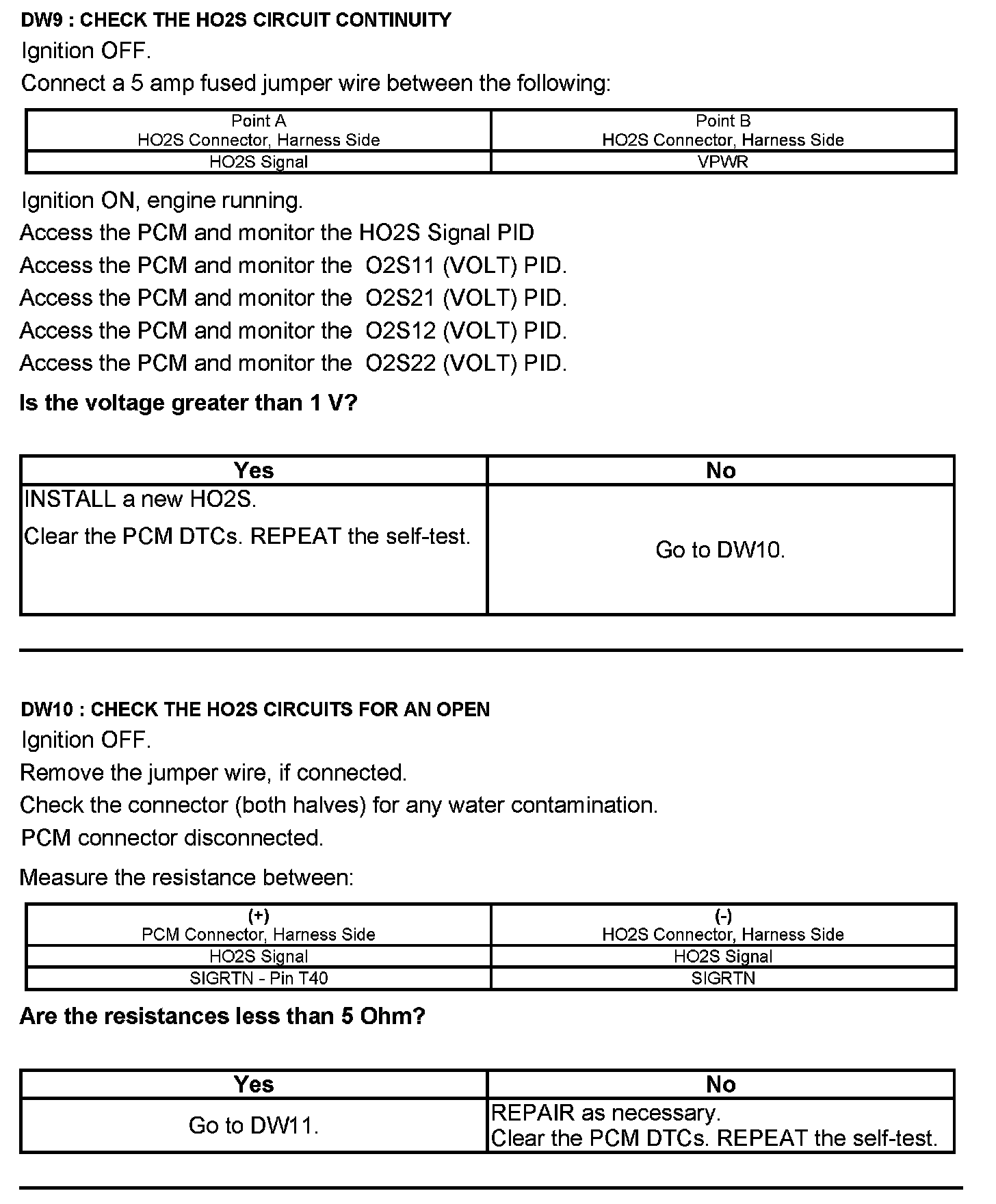 Test DW: Heated Oxygen Sensor (HO2S)