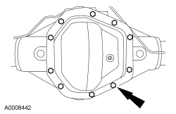 2. Remove the 10 differential housing cover bolts and drain the lubricant.