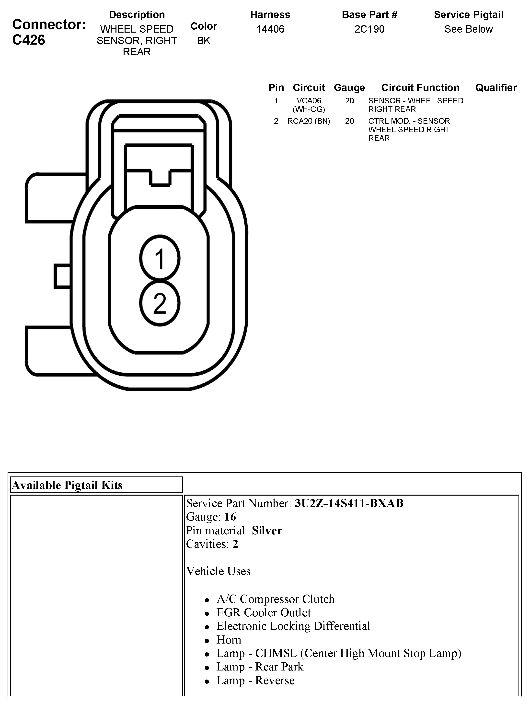 C426 Wheel Speed Sensor, Right Rear