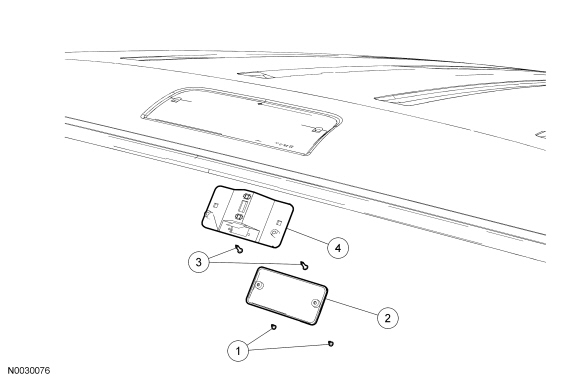 1. NOTE: The tabs (located just above the headliner) can be accessed with a small angled pick tool. They are released by pulling them away from the lamp assembly. Be careful not to use too much pressure or the tabs may break.