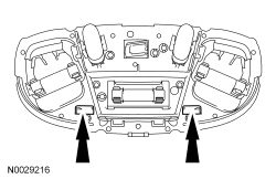 2. Release the 2 retaining clips (through the access holes) and remove the interior lamp from the headliner retainer.