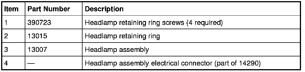 3. Remove the 4 screws and the headlamp retaining ring.