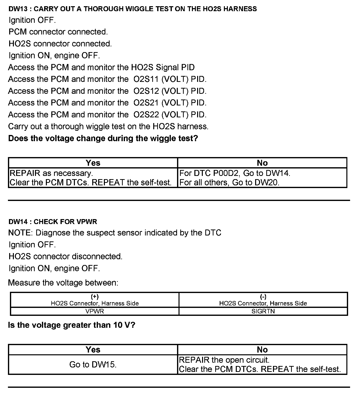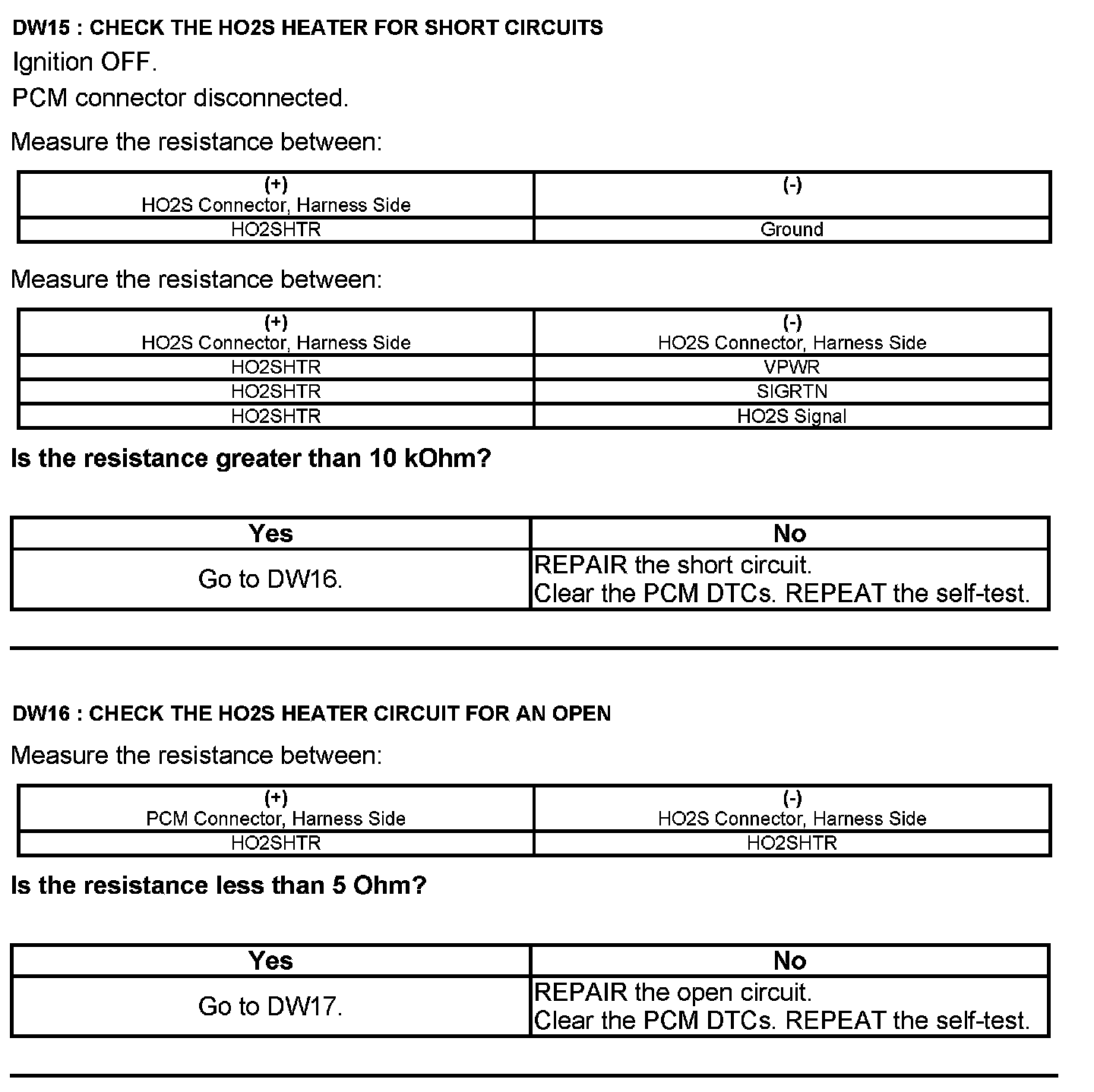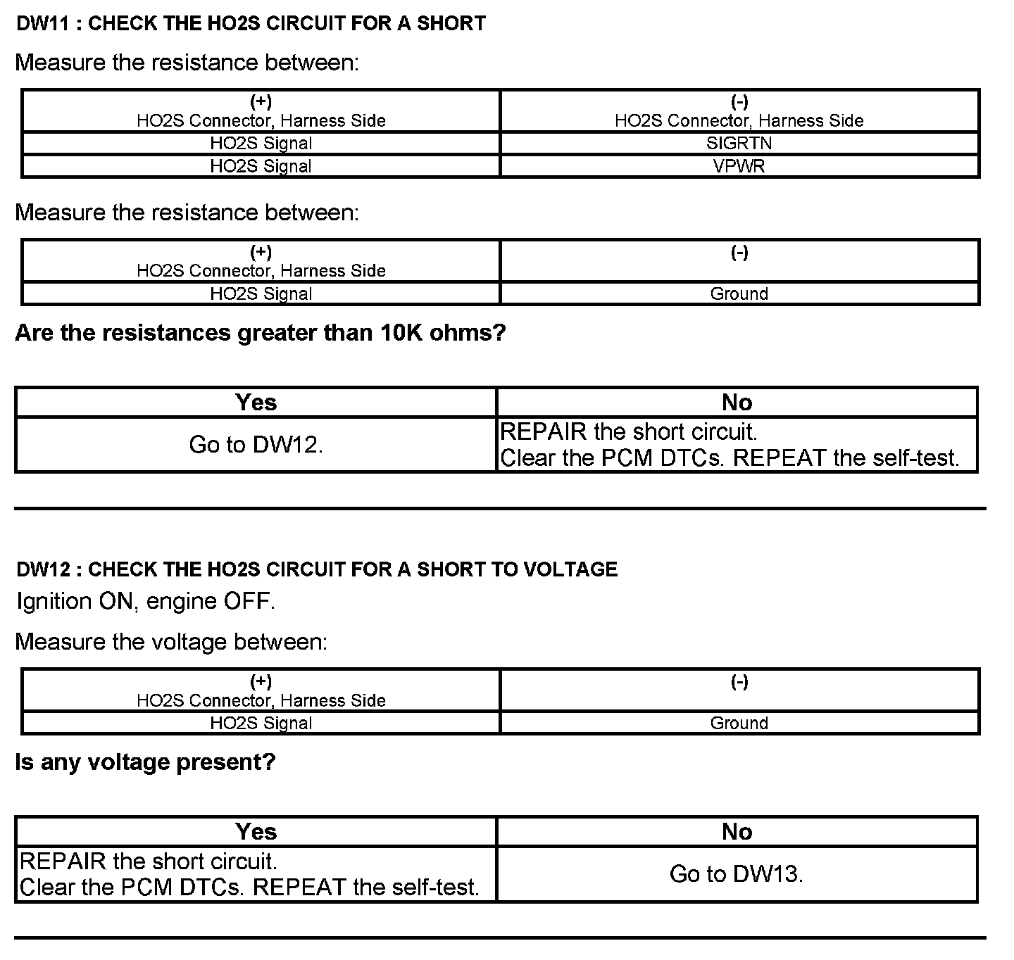 Test DW: Heated Oxygen Sensor (HO2S)