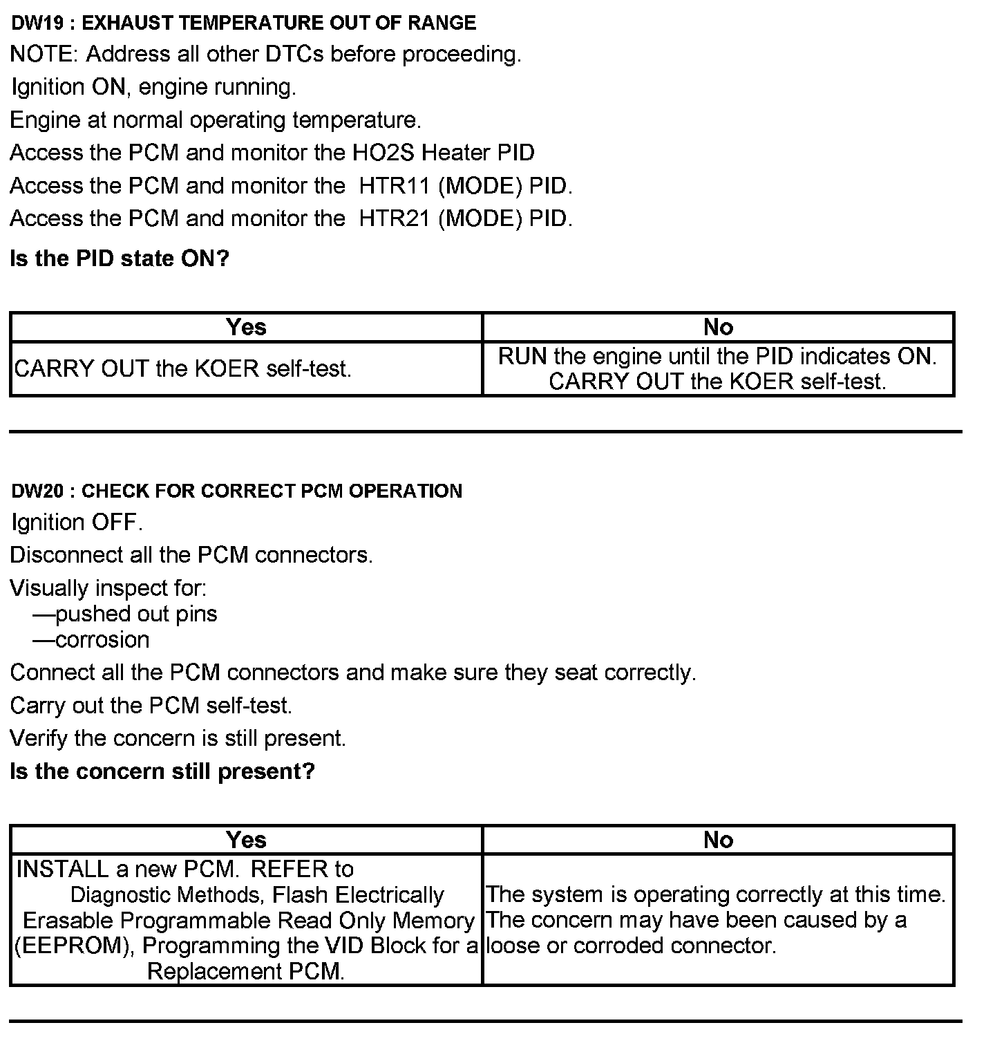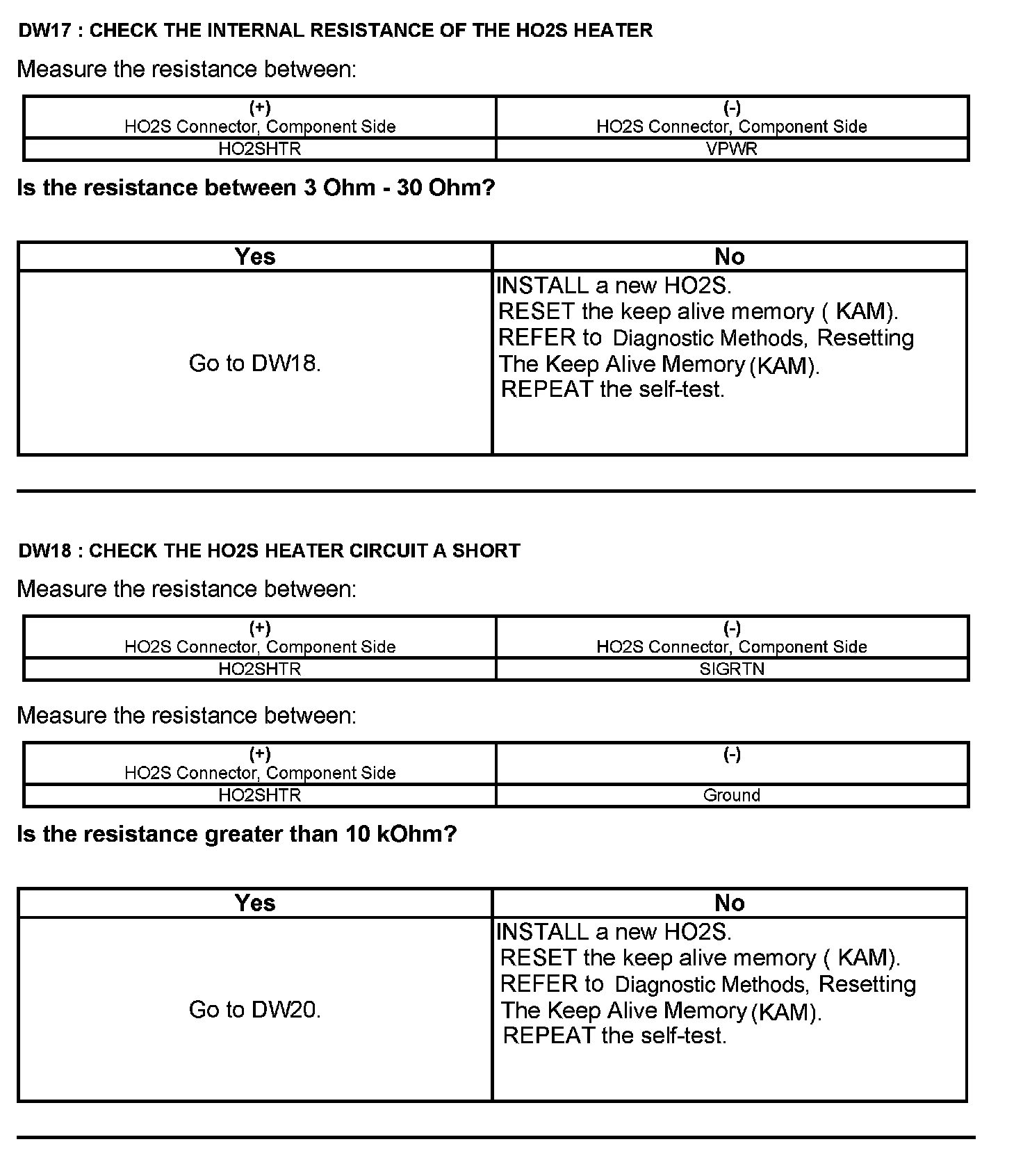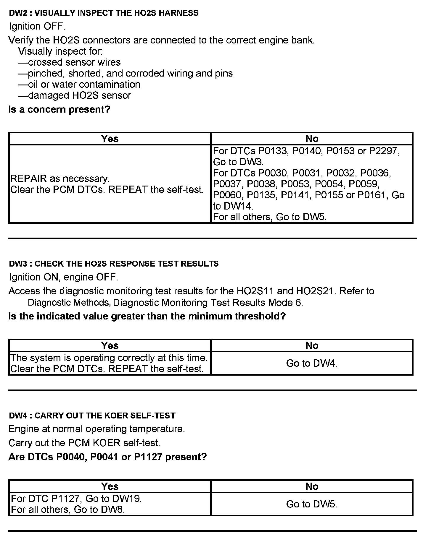 Test DW: Heated Oxygen Sensor (HO2S)