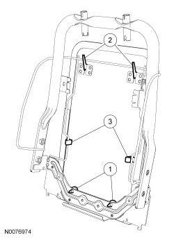4. NOTE: The seat backrest trim cover and foam pad have been removed to show the backrest trim panel retainers.