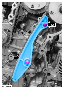 17. NOTICE: Do not use power tools to remove the bolt or damage to the LH primary timing chain guide may occur.