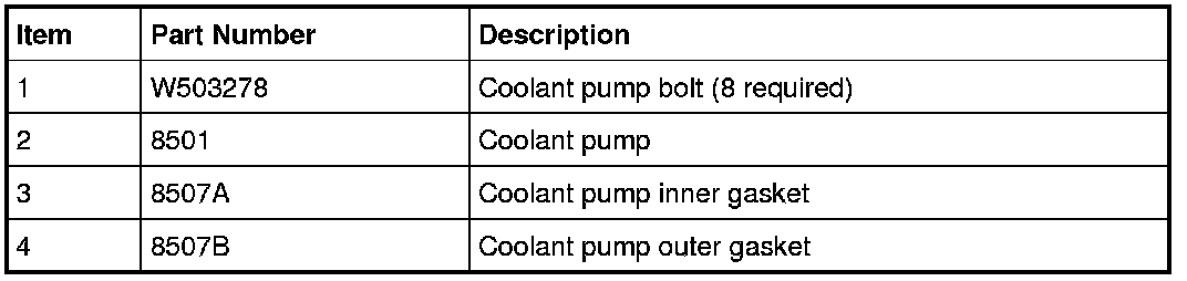 1. Install 2 new gaskets, the coolant pump and the 8 bolts.