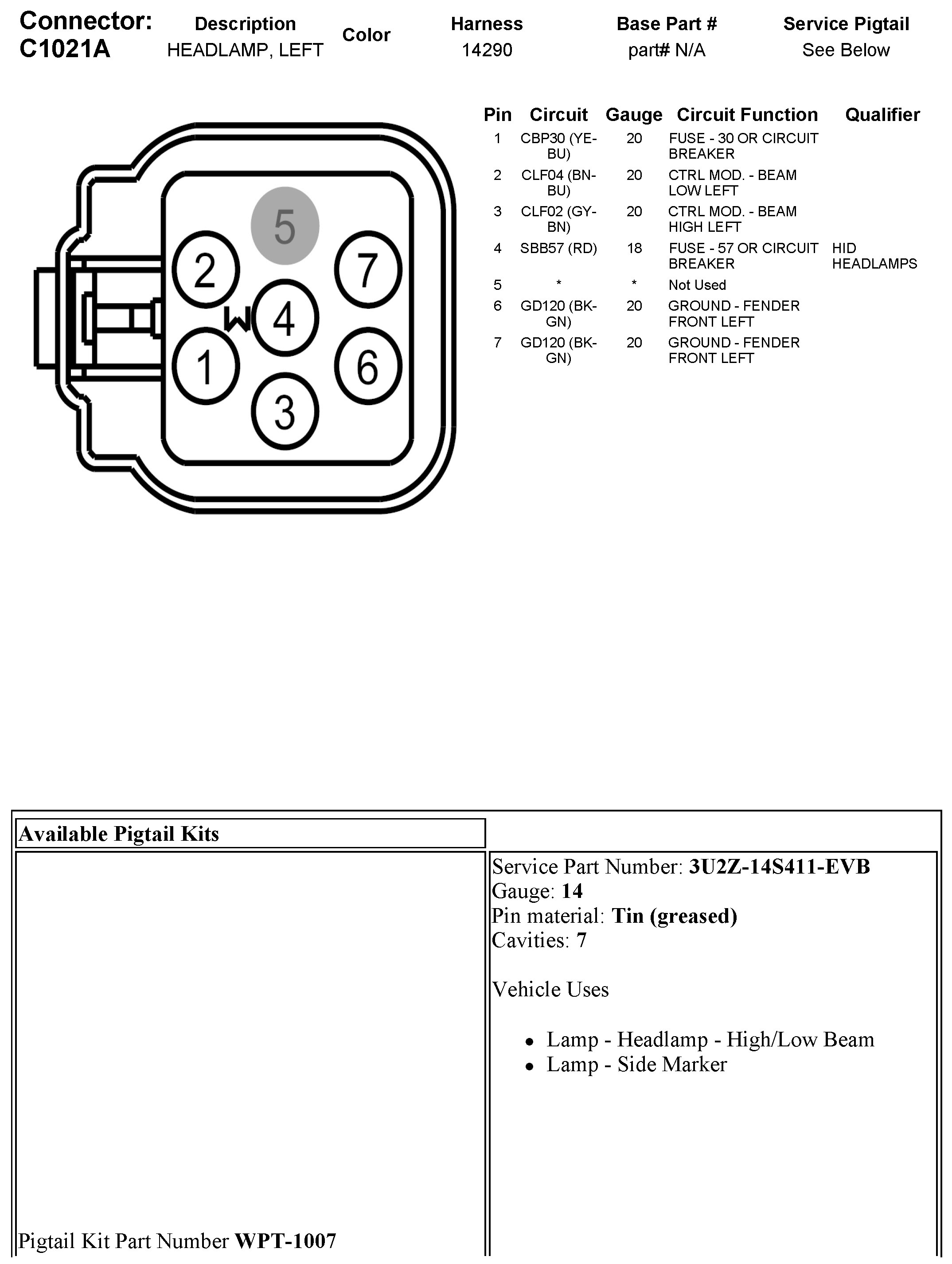 C1021A Headlamp, Left