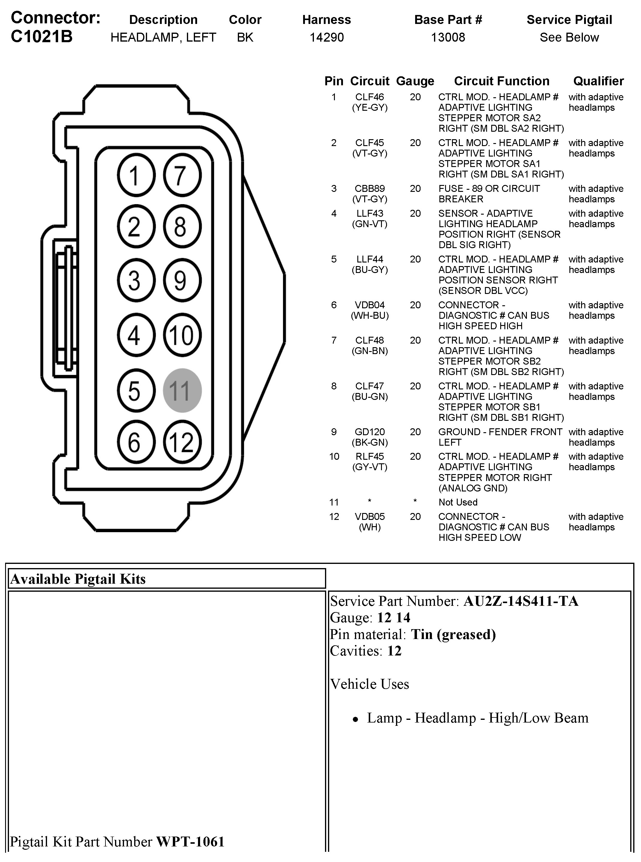 C1021B Headlamp, Left