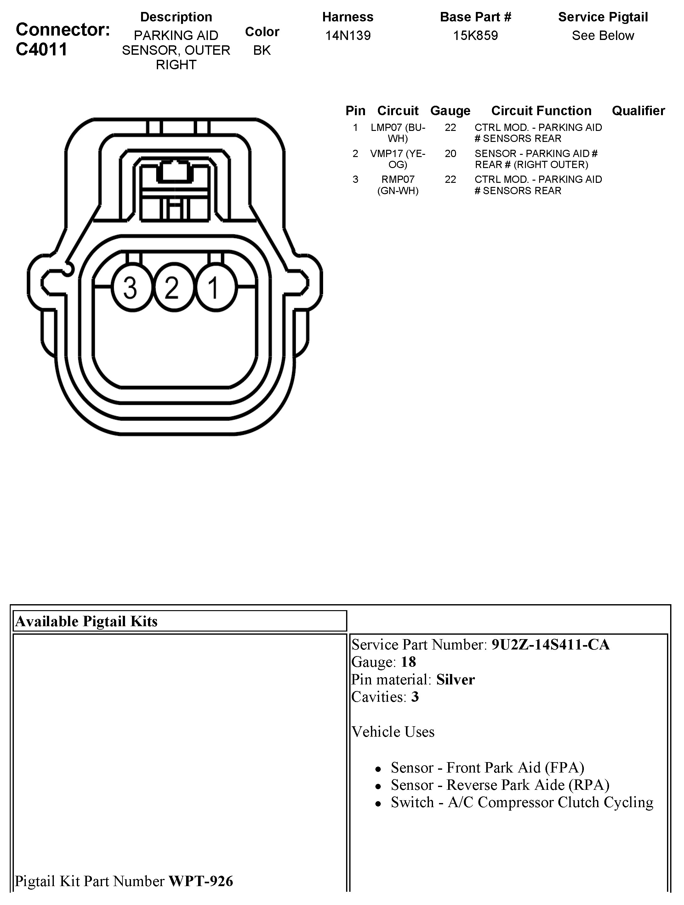 C4011 Parking Aid Sensor, Outer Right