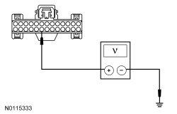 - Measure the voltage between the IPC (Instrument Panel Cluster) C220-21, circuit SBP11 (BU/RD), harness side and ground.